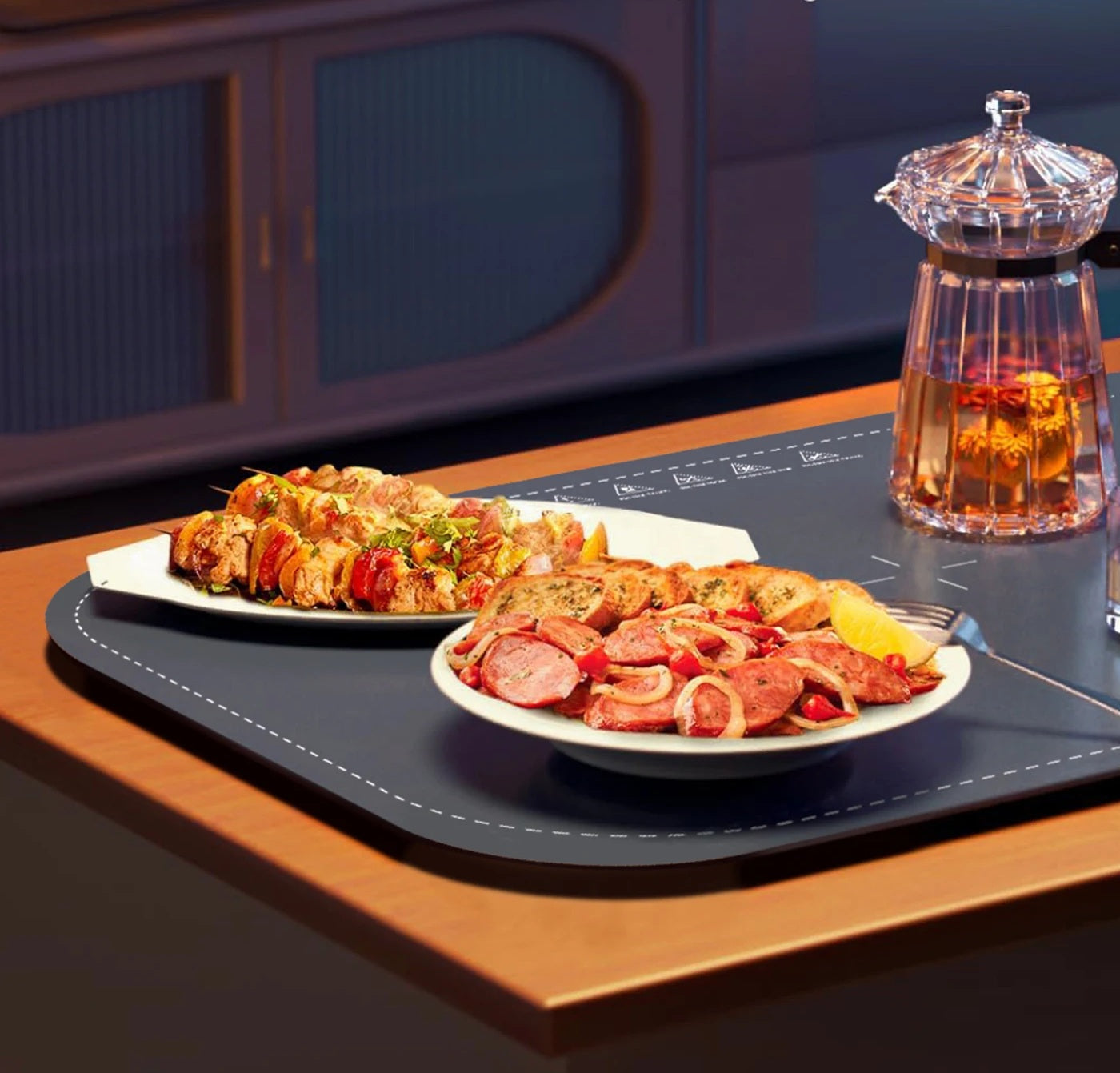 Mantén tus platos siempre a la temperatura ideal con esta alfombrilla calentadora que conserva el calor de forma estable y uniforme, perfecta para hogares, oficinas o negocios.
