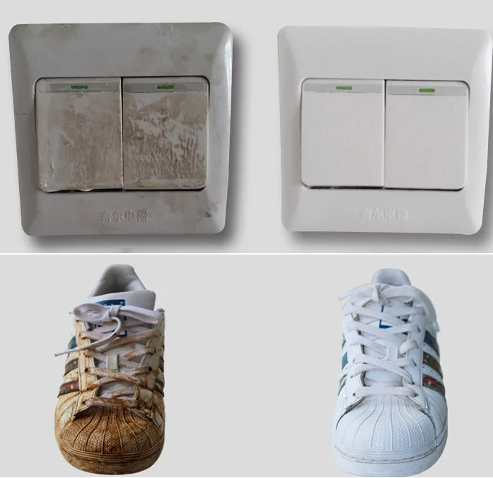 Fabricada con material de melamina de alta densidad, esta esponja actúa como una goma limpiadora que penetra en las superficies para eliminar la suciedad incrustada. No raya ni daña, por lo que es perfecto para usar en paredes, puertas, electrodomésticos, zapatillas, baños, cocinas y mucho más.