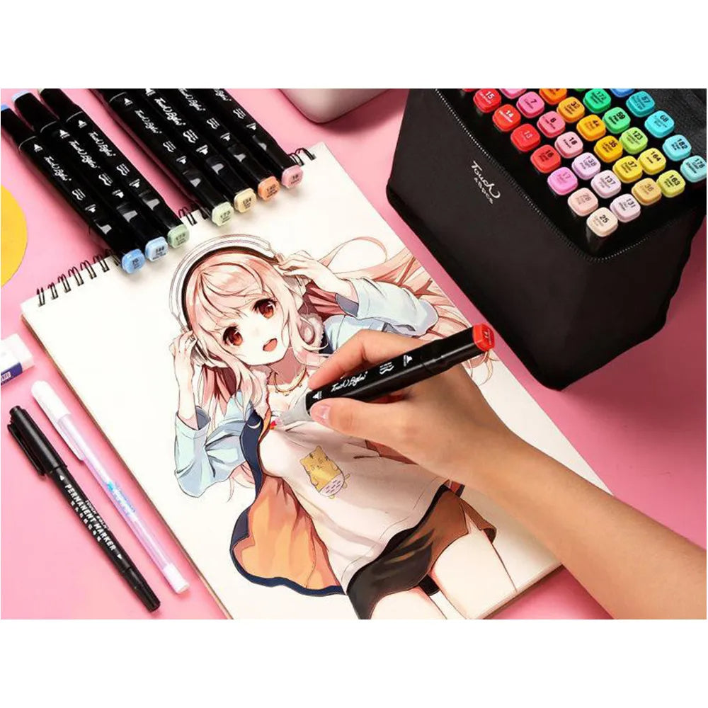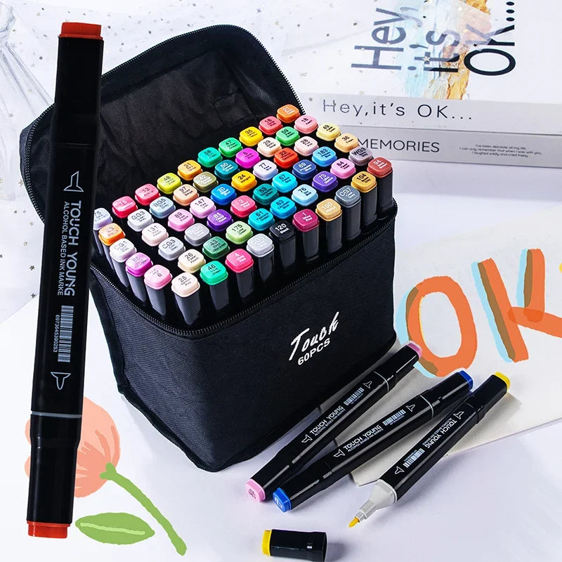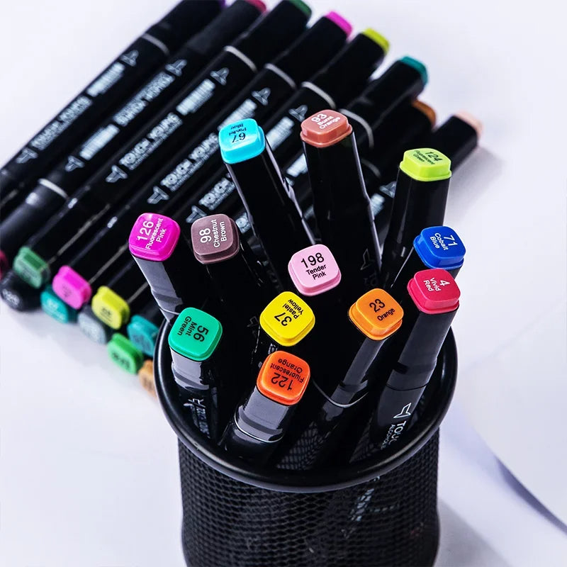 Cada marcador tiene doble punta, ofreciendo una gran versatilidad para diferentes proyectos. Desde trazos finos hasta rellenos amplios, estos marcadores son ideales para cualquier técnica de dibujo. Además, vienen en un práctico estuche para facilitar su transporte.