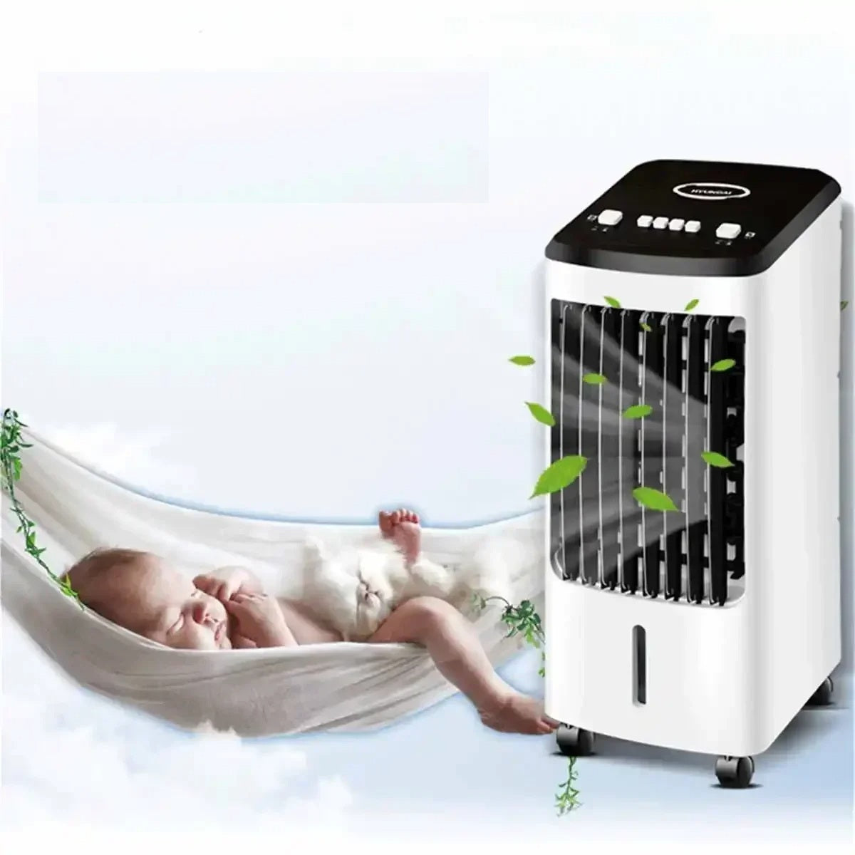 Este climatizador evaporativo portátil destaca por sus características únicas: un tanque de agua de 4L, tres velocidades ajustables, control remoto y rejillas orientables. Además, su diseño compacto y elegante se adapta a cualquier espacio, ya sea en el hogar u oficina.